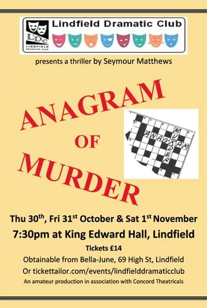 In recent years Lindfield Dramatic Club has gained a reputation for the quality of its murder mysteries. They are extremely popular, and people flock to see them. But they are no substitute for a proper play, so this year the Club’s Autumn production will be the tense and exciting Seymour Matthews thriller Anagram of Murder.